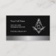 Voici un modèle de carte de visite maçonnique noir et argent qui peut être personnalisé. Conçus pour avoir une atmosphère moderne élégante, ces cartes de visite de franc-maçon de qualité double face représentent un carré d'argent et un symbole de boussole sur le devant. Le côté arrière dispose d'une zone de texte personnalisée qui affiche une phrase trouvée dans la maçonnerie, "To Be One Ask One" (Être un Poser une question). Couleurs : argent métallique, noir et blanc. Catégorie : modèles de cartes de freemasonry.