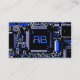 Conception cool avec un gros plan d'une carte de circuits imprimés en bleu et noir. Modèle de carte de visite avec un design personnalisable pour vous permettre de personnaliser avec votre propre texte, photos et idées. Image créée à l'aide d'une photographie originale et de techniques numériques.