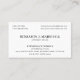 Créez une apparence professionnelle avec ce design classique de carte de visite. Une combinaison de typographie serif traditionnelle et d'une mise en page formelle ajoute à la sensation de luxe. Personnalisez le modèle avec votre nom, profession, adresse professionnelle, numéro de téléphone, site web et email. Des informations supplémentaires peuvent être incluses au verso. Ce design polyvalent conviendrait à de nombreuses professions différentes, notamment les avocats, les juristes, les écrivains, les journalistes, les designers, les professionnels du monde des affaires, les consultants en entreprise et plus encore. Couleur d'impression : noir. Explorez la collection en ligne pour des modèles imprimés assortis !