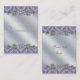 Elégant gris argent et lavande violet damassé modèle de carte de visite. Ajoutez vos détails à l'avant et à l'arrière en choisissant simplement le bouton orange "Customisez-le !" pour commencer à ajouter vos détails d'événement, le style de police, la taille et la couleur de police et le libellé. Veuillez noter que tous les modèles d'invitation que vous trouverez sur Zazzle sont des graphiques imprimés sur papier plat stock sans bijoux, arcs, surélevés, gaufrés, ou pièces ou pièces ajoutées.