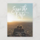 Carte postale pour annoncer la date du mariage, collection de mariage avec écriture minimale et typographie avec photo.