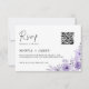 Modèle de carte RSVP de mariage violet Il s'agit d'un Modèle de carte RSVP de mariage violet. Vous cherchez une carte RSVP moderne et élégante à ajouter à votre invitation de mariage qui peut être customisée à votre style unique? Ne cherchez pas plus loin que notre modèle de carte de réponse minimaliste - parfait pour la do-it-yourself mariée. Ajoutez facilement votre propre QR pour diriger les invités vers votre site Web mariage. Économisez du temps et de l'argent sans compromettre la qualité ou le style en regroupant votre papeterie.