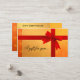 Modèle de certificat cadeau élégant en rouge et or chaud avec un nœud festif. Un excellent modèle de certificat cadeau ou de carte de visite pour les Fêtes. La taille de carte de visite facile à utiliser conviendra à tous les portefeuilles. Un moyen puissant d'attirer de nouveaux clients ! Ce design conviendra à de nombreux commerces de détail ainsi qu'aux entreprises orientées services.