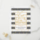 modèle de citation 'Manger, boire et être marié', avec des lettres dorées, des confettis. Convient pour les annonces de Save the Date.