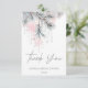Carte de remerciement de modèle de douche de mariée hivernale amour neigeux, carte de remerciement de douche de mariée hivernale à l'aquarelle rose pastel et gris, branches de pin enneigées avec guirlandes de cristal, police moderne décontractée