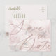 Ce modèle de carte postale de faire-part de date fixe personnalisable comporte une photographie atténuée de pivoines roses en arrière-plan avec une police surdimensionnée, le texte est modifiable et personnalisable, il suffit de cliquer sur le bouton Personnaliser pour faire de ceci votre propre et félicitations, profitez-en !