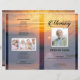 Modèle de programme de funérailles beau et professionnel avec coucher de soleil, facile à éditer et à imprimer.
