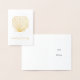 Ce modèle de carte est en or métallique et blanc. Il comporte un dessin de ligne de coquillage de pétoncle et un message de script personnalisé à l'avant de la carte. L'intérieur contient du texte de script qui peut être personnalisé.