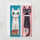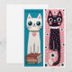 Créez vos propres marque-pages à partir de cette carte imprimée. Il suffit de découper autour des images pour créer deux marque-pages adorables. L'un représente un chat blanc aux grands yeux bleus, avec un collier vert à pois jaunes et un pendentif en forme de cœur rose qui pend, debout sur un tas de livres. Le fond est d'un bleu uni avec l'inscription "Juste un chapitre de plus !" en haut. L'autre représente un chaton noir avec un collier blanc, de grands yeux ronds et des joues rosées. Le fond est rose avec des fleurs blanches et bleues. N'oubliez pas de cocher la case à côté de "Retirer du verso de la carte" sous le logo zazzle, afin que les dos soient vierges.