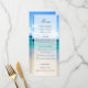 Pour les jeunes mariés attachés de plage, voici un facile de customiser le modèle de menu de mariage pour votre réception. Océan bleu de scintillement à l'arrière-plan avec la plage sablonneuse et les nuages bleus et blancs. Belle photo ; beau pour vos parties de plage !