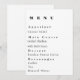 Un design de carte de menu de mariage minimaliste et élégant mettant en vedette une typographie épurée et un style serif raffiné. Parfait pour les couples modernes qui aiment la papeterie de mariage intemporelle, simple et sophistiquée.