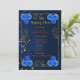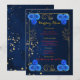 Améliorez vos tables de réception avec cette élégante carte de menu de mariage florale bleue avec une bordure dorée luxueuse. Conçue avec de délicates fleurs aquarelles bleu marine et un cadre doré classique, cette carte de menu complète parfaitement les thèmes de mariage bleu et or.
