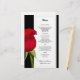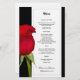 Rose rouge, noir et blanc mariage modèle de menu. Le papier plat est noir avec panneau blanc qui contient du texte imprimé noir. Papier floral très abordable, mais belle conception.