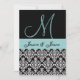 Cette invitation bleu aqua et noir et blanc avec son motif de damas en brocart fait une élégante invitation de mariage. Ajoutez vos noms et monogramme sur le devant, et votre invitation de mariage sur le dos.