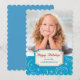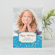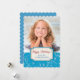 Une bordure de jolies volutes et d'étoiles de Noël blanches sur fond bleu fournit une bordure festive pour votre propre photographie sur cette carte de vacances. Votre photographie couvre la partie supérieure, et une bannière de bordure assortie de bleu, de blanc et d'or sépare les deux parties. "Joyeuses Fêtes !" est la première ligne sur la bannière, avec votre propre texte en bleu en dessous. Le dos de la carte est d'un bleu uni assorti. Festif et complémentaire à presque n'importe quelle photographie. Ce design fonctionne bien avec la plupart des formes de cartes proposées.