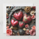 Joli modèle de photo personnalisé de carte de la Saint-Valentin Steampunk gothique. Jolies roses dorées et rouges, fleurs, crâne, cœurs métalliques et engrenages métalliques, le dos comporte trois espaces pour des photos en forme de cœur. Vous pouvez également modifier le texte dans la zone de personnalisation.