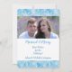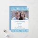 Ce modèle de carte de Noël plate met vos photographies au centre de la scène, avec une jolie bordure de motif de flocon de neige à l'aquarelle bleue et blanche en haut et en bas. Votre texte personnalisé est de la même couleur bleue au centre sur fond blanc. Nous avons présenté un thème "Mariés & Joyeux", mais tout le texte est facilement personnalisable, de sorte que ce design peut être adapté à n'importe quelle situation, y compris une photographie de famille. Le dos de la carte est d'un bleu uni assorti. *Crédit du motif de flocon de neige à ATArtDigital*