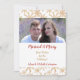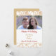 Ce modèle de carte de Noël plate avec photo met vos photographies au centre, avec une jolie bordure à motif de flocons de neige aquarelle or et blanc en haut et en bas. Votre texte personnalisé est en or et rouge assortis au centre sur fond blanc. Nous avons présenté un thème "Mariés & Joyeux", mais tout le texte est facilement personnalisable, de sorte que ce design peut être adapté à n'importe quelle situation, y compris une photo de famille. Le dos de la carte est d'un or uni assorti. *Crédit motif flocon de neige à ATArtDigital*