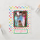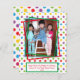 Carte photo lumineuse et amusante pour la fête des pères avec un modèle pour la photo préférée de Papa avec les enfants. Il y a un message spécial en bas et un endroit pour que les enfants puissent mettre leur signature. Le fond est composé d'étoiles rouges, jaunes, bleues et vertes. Le verso de la carte est orné de pois rouges, jaunes, bleus et verts. C'est une carte si amusante pour montrer à Papa combien les enfants l'aiment.