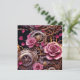 Joli modèle de photo personnalisé gothique victorien steampunk pour carte de la Saint-Valentin. De belles roses roses, des engrenages métalliques dorés, argentés et cuivrés. Le dos comporte trois espaces pour les photos en forme de cœur. Vous pouvez également modifier le texte dans la zone de personnalisation.