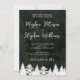 Une carte de sauvegarde de date recto-verso présentant votre propre photo sur le devant avec les mots « Save the Date » et une date de mariage personnalisable affichée sur une simple forme de ruban blanc. Le dos présente une photo de paysage forestier de Destei avec un espace pour des détails de mariage supplémentaires. Une rangée de silhouettes de sapins longe le bas, ajoutant une touche de forêt. Parfait pour les mariages de randonnée, les célébrations en plein air et les événements inspirés de la nature, cette carte élégante mélange des moments personnels avec une beauté scénique.
