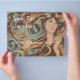 Modèle de salon avec un beau visage de femme et de longs cheveux bouclés