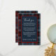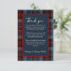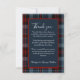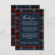 Cette carte de remerciement de mariage est disponible en différentes tailles, formes et papiers. Il est personnalisable avec votre introduction de remerciement, vos noms et vos monogrammes. Il montre un mélange harmonieux d'un motif écossais bleu marine rouge noir et il a des tons bleu clair et une typographie blanche. Le rectangle minimal bleu marine avec une bordure bordeaux est pour votre personnalisation. Le carré au dos est pour votre monogramme. Hobinishop