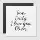Joli modèle de texte personnalisable : Chère Emily, je t'aime, Alexander. Cliquez sur modifier et changez uniquement les noms ou tout le texte.