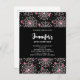Carton d'invitation d'anniversaire avec un motif transparent mignon avec des toiles d'araignées blanches et des araignées roses.