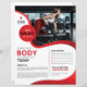 Modèle de club de fitness professionnel conçu pour promouvoir les gymnases, l'entraînement personnel et les programmes d'entraînement avec un agencement moderne et énergique. Parfait pour le marketing de services de santé, de bien-être et de fitness.