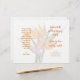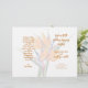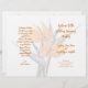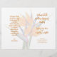 Programme de mariage plié modèle avec fleurs oranges oiseaux de paradis. Livre blanc de quatre pages à customiser en écriture et en texte orange imprimé. Inclure un message à la famille et aux amis sur la dernière page / arrière du programme lorsque plié.
