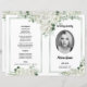 Beau White Floral Funeral Program modèle, facile à modifier et à imprimer. Programme pliés. Taille dépliante : 11x8,5 po Taille après pliage : 5,5x8,5 po