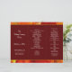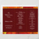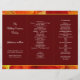 Modèle de programme Mariage de automne personnalisé. Panneau central de couleur bordeaux foncé sur un arrière - plan de feuilles d'automne orange et jaune. Le texte blanc est facile à customiser par section sur un papier plié à trois voies. Les images et le texte sont imprimés SEULEMENT SUR UN CÔTÉ. Le papier feuilleté est affiché et peut être modifié. ............