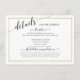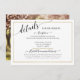 MODÈLE. Customisez avec les informations mariages dont vous avez besoin pour communiquer avec votre famille et vos amis. Une élégante ligne dorée, fine bordure et ligne de séparation avec écriture manuscrite "détails". Au verso, une image de session photo fiançailles. Art et design par Audrey Jeanne Roberts, artiste et designer de renommée internationale, copyright.