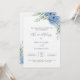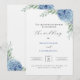Faire-part de mariage design minimaliste avec de belles fleurs d'hydrangée bleue sur arrière - plan blanc. Le design comprend la typographie manuscrite pour une touche et une élégance plus personnelles. Le texte peut être édité facilement pour correspondre à vos préférences. Si vous avez besoin d'aide pour customiser ce produit, veuillez me contacter en utilisant le bouton de message ci-dessous et je serai très heureux de vous aider.