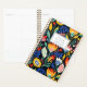 Personnalisez ce planificateur avec votre nom en italique noir encadré par un rectangle blanc, sur un motif floral audacieux et coloré sur un arrière - plan noir.