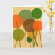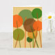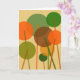 Un design floral art moderne et géométrique abstrait de fleurs rondes sur tiges dans les couleurs orange, vert et marron.