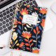 Personnalisez ce planificateur avec votre nom en italique noir encadré par un rectangle blanc, sur un arrière - plan noir, un motif audacieux et gai de fleurs orange et blanches.