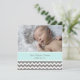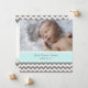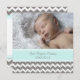 Nouveau bébé garçon cartes photos personnalisés faire-part de naissance dans adorable et élégant pastel bleu turquoise, gris et blanc amusant et moderne chevron zigzags motif, entièrement personnalisable avec la photo et les détails de naissance de votre bébé, une excellente façon de partager l'heureuse nouvelle de la naissance de votre fils avec des amis et la famille.