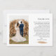 Ce modèle photo élégant et personnalisé express votre gratitude à vos invités mariages. Ce modèle dispose d'une belle police de script qui dit "Merci" sur le devant, avec votre nom et votre date de mariage. Vous pouvez également télécharger votre photo mariage préférée pour la rendre plus spéciale et mémorable. Le dos de la carte a un design simple et chic avec espace pour écrire votre propre message. Vous pouvez customiser les couleurs, les polices et la mise en page de ce modèle selon votre style et vos préférences. Ce modèle photo carte de remerciements est une façon parfaite de montrer votre appréciation et votre amour à votre famille et amis qui ont célébré avec vous lors de votre grand jour. ❤️