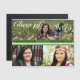 Un modèle photo qui peut être customisé pour tenir un trio de photos du diplômé ou plus si désiré. Cette carte magnétique est facile à personnaliser avec votre propre texte, style de texte et couleurs. La barre verte et blanche peut être enlevée si vous le souhaitez. NightOwlsMenagerie, 2017. Des échantillons de photos avec la permission de C. Miller de Elysium Photography.
