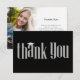 Express votre gratitude dans le style avec ces cartes de remerciement photo graduation, avec un modèle élégant en noir et blanc simple conçu pour un lycée de classe supérieure ou de diplômes d'université. Avec une mise en page élégante, propre et chic, ces cartes conviennent à n'importe quel garçon ou fille ado, vous permettant de les personnaliser avec un message personnalisé et une photo significative. La typographie moderne apporte une touche sophistiquée, ce qui en fait un moyen parfait de remercier la famille et les amis !