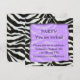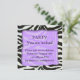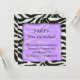 Jolie invitation à la fête de design zébrée, une bordure zébrée associée à un arrière - plan violet. une invitation à la fête très design et unique, adaptée à toutes les fêtes.