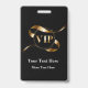 Badges d'entrée VIP élégants que vous pouvez personnaliser en ligne à partir de notre modèle modifiable. Conçus avec un emblème graphique de luxe de ton doré imprimé sur les deux côtés qui dit VIP pour un club d'adhésion de luxe, un événement spécial ou un laissez-passer pour des soirées privées exclusives. Créés pour l'industrie du divertissement, la vie nocturne ou le style de vie et disponibles avec un cordon ou une attache à pince. Faites sentir vos invités spéciaux avec ces badges élégants.