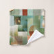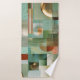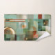 Bath towel set featuring a modern abstract design in green, teal and gold.