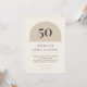 Warm neutral minimalist arch birthday invitation with modern typography. Age name date time location and RSVP are fully editable so you can customize for any 50th celebration and print or mail with ease.