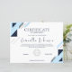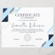Designed with a contemporary aesthetic, this certificate features a stylish geometric pattern in navy blue and light blue, perfect for a professional corporate setting, school, or organization. The clean white background ensures the text is legible and elegant.