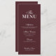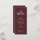Elevate your reception tablescape with this elegant Modern Burgundy Wedding Menu Invitation. Featuring a minimalist layout accented with rich burgundy tones, this design effortlessly blends modern sophistication with timeless romance. Clean typography and a contemporary format create a sleek and elegant presentation that perfectly complements your wedding theme.