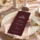 Whether your celebration is modern, classic, or romantic, this burgundy menu design pairs seamlessly with a wide range of wedding styles and color palettes.