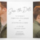 Ce design chic de sauvegarde de la date dispose d'une grande photo horizontale et d'un message d'accueil de script qui s'étend sur l'ensemble à l'extérieur de cette carte tri-pli. Le message d'accueil sur le devant dit simplement "Enregistrer la date". Lorsque vous ouvrez la carte, vous voyez une photo à gauche, une photo à droite, et au milieu, vous enregistrez le texte de la date. Ce design est un énoncé chic et moderne. La mise en page multi-photo vous permet de télécharger un total de trois de vos photos préférées. *CONSEIL DE CONCEPTION : Assurez-vous de choisir "REMPLIR" pour que vos photos aillent jusqu'au bord. "Démasquer" les photos si nécessaire pour les modifier.